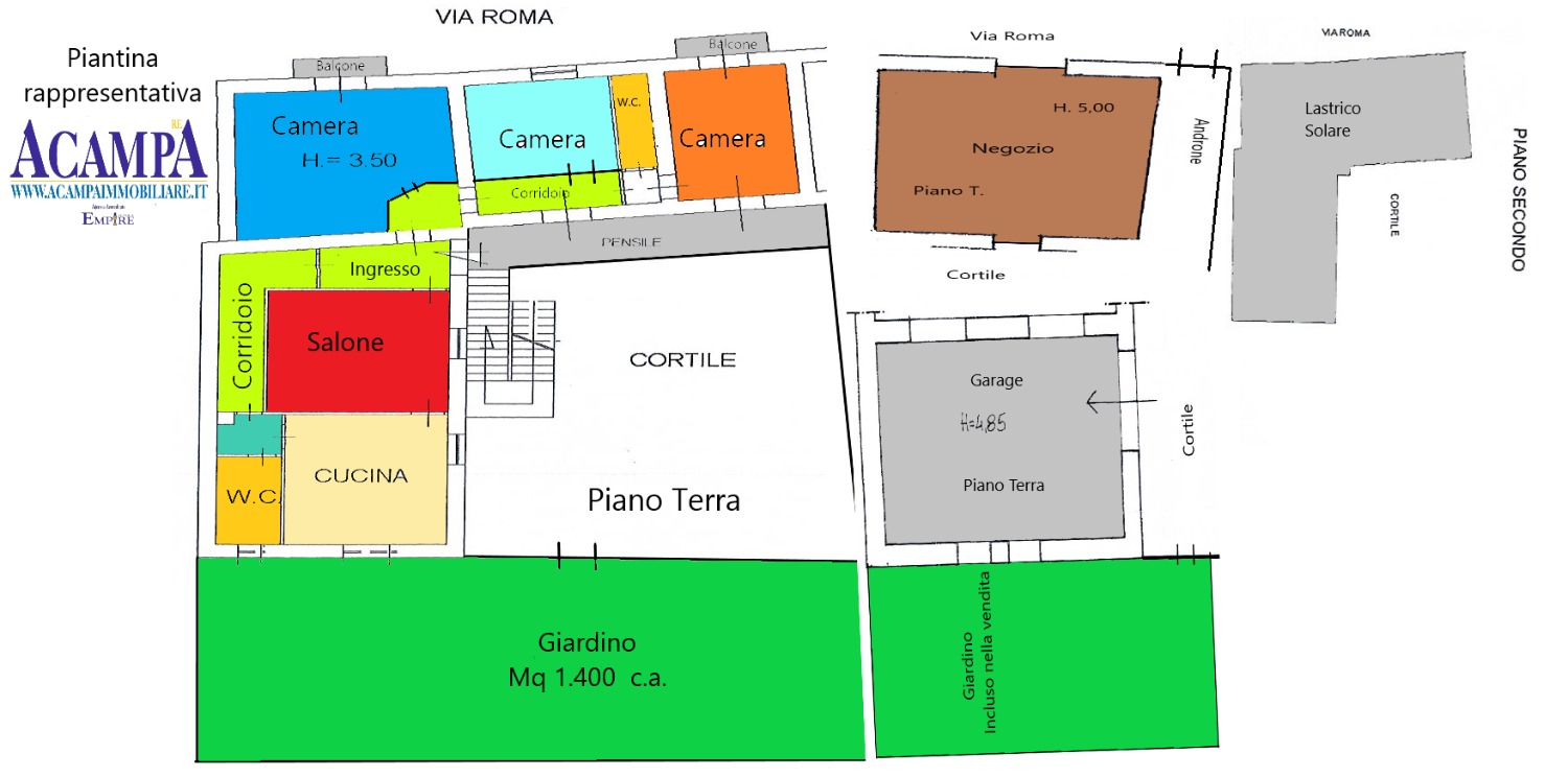 • Negozio fronte strada (con doppio accesso: da Via Roma e dal cortile interno)
